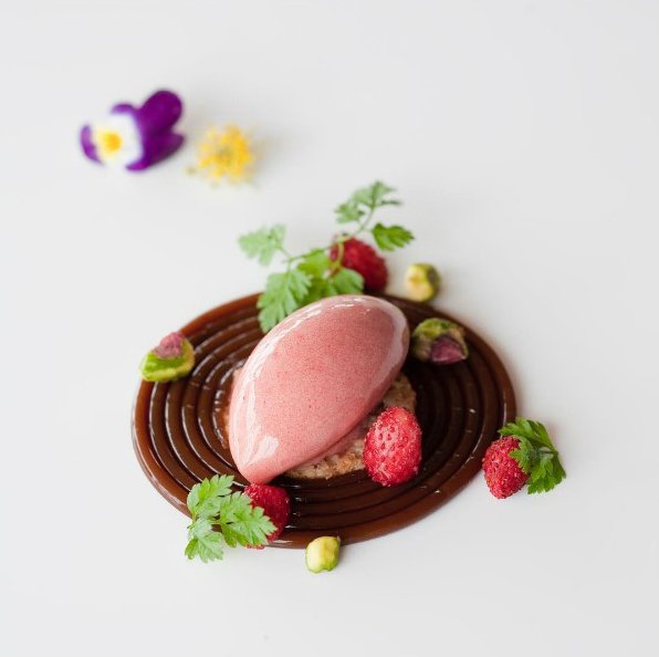 🍴 Esta delicia es una cereza guinda elaborada por Xavi Donnay como petit four de (***) junto con y