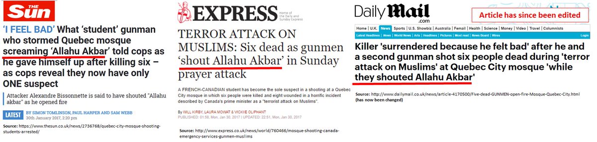6 Muslims praying in a mosque murdered in terror attack by man known for right-wing online posts: guess how the tabloids cover it?pic.twitter.com/Yhp4LYqO4J