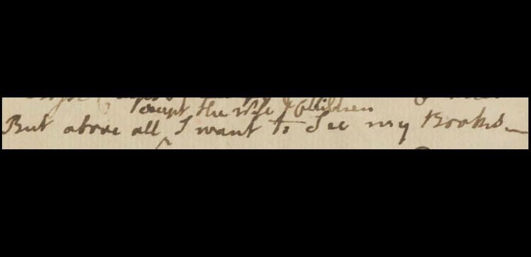 : This is why I love John Adams. "But above all ^except the wife & children^ I want to see my books." Nice save, John.