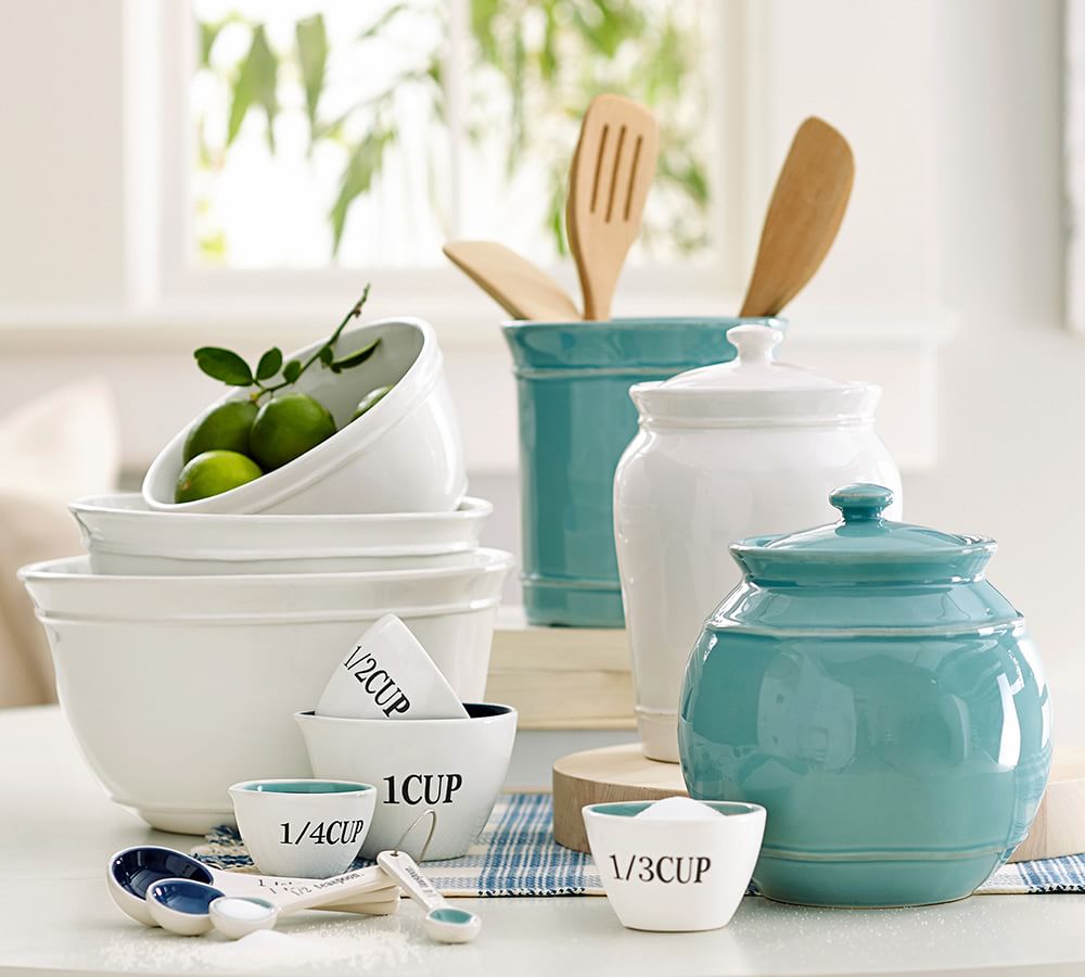 Give your kitchen a charming refresh with our adorable Cambria Measuring Cup Set, Mixing Bowls, and Canisters!