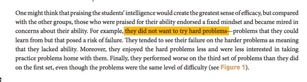 Praising kids for being smart makes the risk averse. Focus on their efforts instead! https://ed.stanford.edu/sites/default/files/manual/dweck-walton-cohen-2014.pdf …pic.twitter.com/bOZGzKU5pn