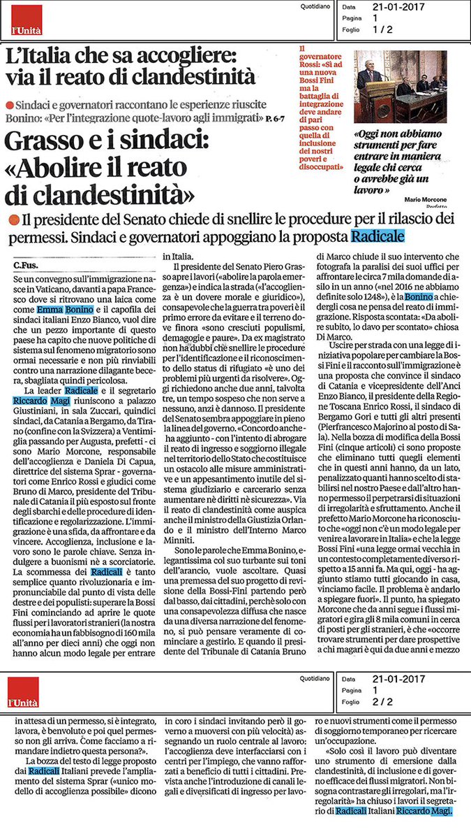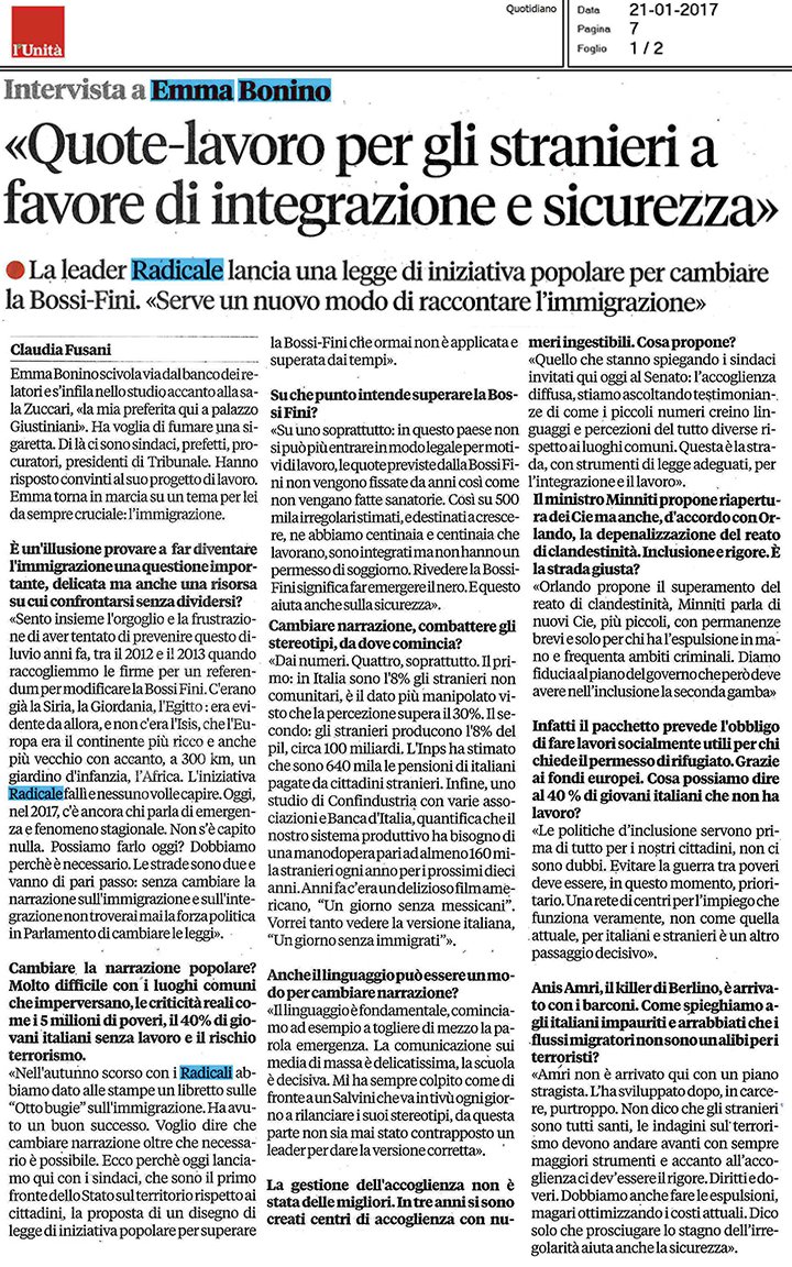 #Migranti,#Bonino lancia proposta di legge popolare per superare la Bossi-Fini - DIRE.it http://www.dire.it/20-01-2017/101642-migranti-bonino-lancia-proposta-legge-popolare-superare-la-bossi-fini/ …@Radicali -