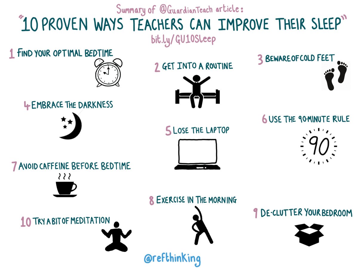 "10 proven ways teachers can improve their sleep." Try these this weekend! For more tips, see http://bit.ly/TKTW16 .