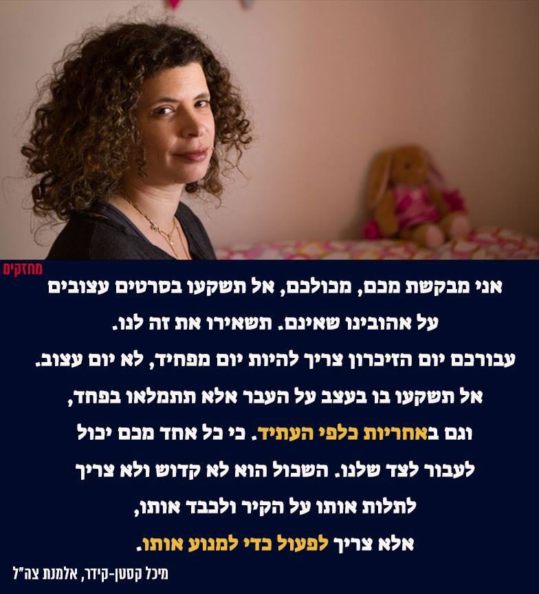 אלמנת צה"ל, מיכל קסטן-קידר, במסר חד וברור: תבחרו בחיים ותפעלו כדי למנוע את המוות!pic.twitter.com/4S983nyy66