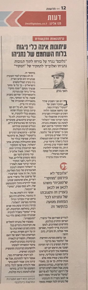 @globesnews בעקבות תגובת נתניהו לתחקיר המקור על@WallaNews: לא כל יום קם עיתון בבוקר, ומגלה שהוא משמש כלי להטעיה או כלי נגד העיתונות. אף עיתון לא אמור לגלות שהפך לעוד כלי על לוח השחמט של נתניהו. בוודאי שלא לטובת ניגוח הקולגות מ-@news10 ומ-וואלה! https://bit.ly/2KEhcYJ pic.twitter.com/jiAb60Y8y3