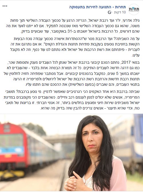 אז מסתבר שגילה אדרעי והחבר'ה מהרכבת מארגנים לנו שביתה ממש בקרוב, למרות שממש לפני שנה הם התחייבו לשקט תעשייתי. מי שמגן על ההסתדרות לא מגן על החלשים, אלא בדיוק על הוועדים העשירים והחזקים האלה. אגב, לאחרונה זכתה ההסתדרות בתומך חדש בארגון הבריוני שלהם, אחד, משה כחלון