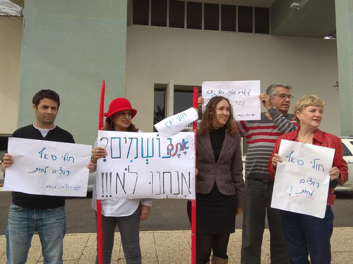 חולי סיסטיק פיברוזיס מפגינים מול הכניסה לועדת סל התרופות. הם דורשים להכניס את התרופה אורקמבי לסל. התרופה בשנה שעברה הגיעה לקו הגמר אבל נותרה בחוץ. מה יקרה השנה?pic.twitter.com/L7CVlbollc