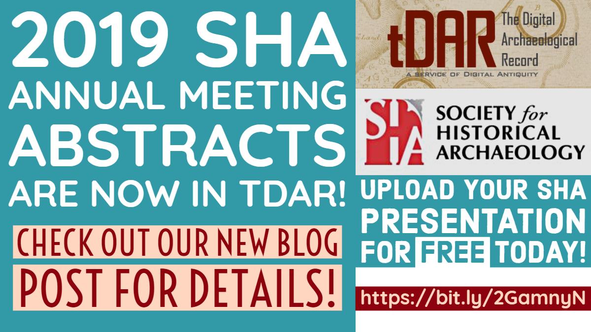 Great news! The 2019 SHA Annual Meeting Abstracts are now in tDAR! If you were a presenter from 2015-2019, you can access & edit your abstract and upload your presentation for FREE! Visit https://bit.ly/2GamnyN for more details!
