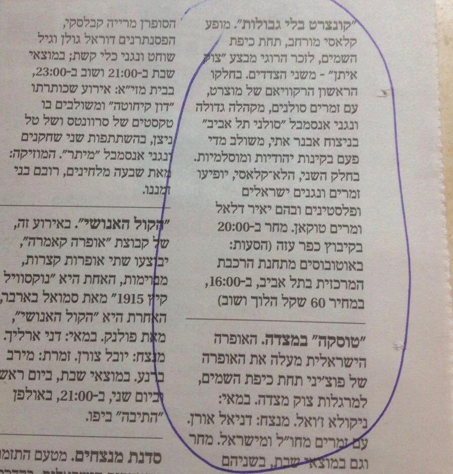 זו ההודעה על הקונצרט שבו השתתף