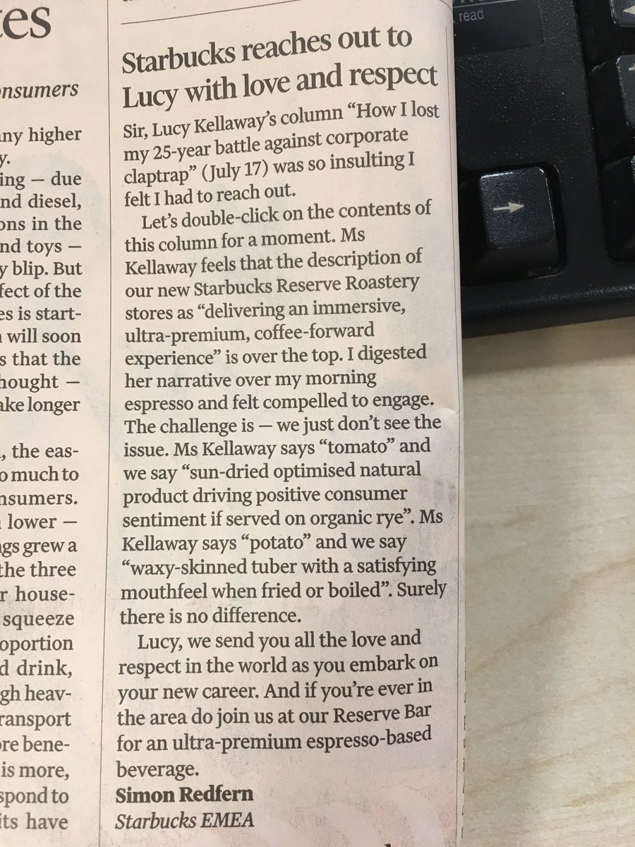 Props to Starbucks (I know) - amusing response to Lucy Kellaway's bullshit bustingpic.twitter.com/oxIYQH7Wgd