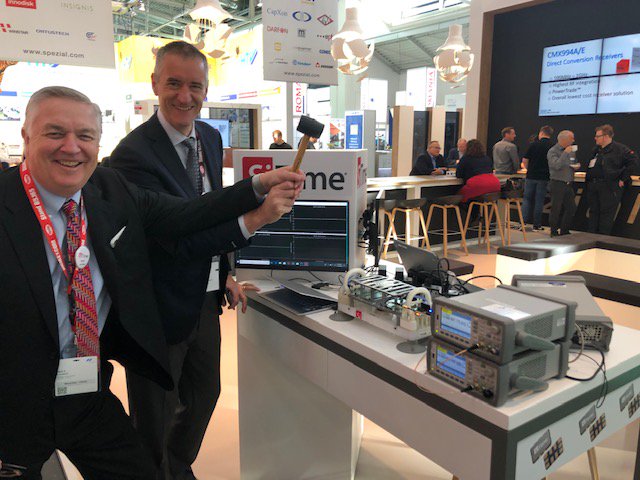 Demo at electronica shows behavior of a quartz-based (right side) and the SiTime based OCXO (left side) under the shock of a hammer. While the quartz-based device has a big deviation, the MEMS-based one shows no reaction. Thanks