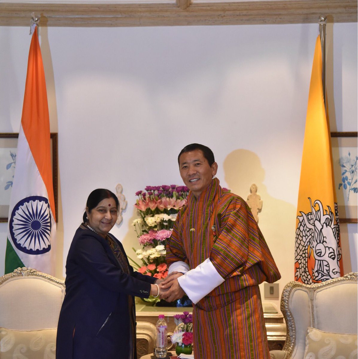 @SushmaSwaraj called on@PMBhutan Dr Lotay Tshering. Congratulated him on assumption of high office of PM of Bhutan. Warm exchange of views on important aspects of our bilateral relationship.pic.twitter.com/iOMt4kdNQN