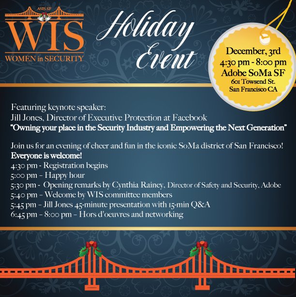 @SFBayASIS Women in Security Holiday Event! https://okt.to/xd1iQ7 pic.twitter.com/P0kgYSCwdL