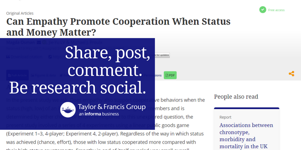 Found a piece of research you want to share on http://tandfonline.com ? DYK you can share straight from an article on over 200 platforms? Just hit your social channel of choice and you’ll automatically be re-directed to share from your account.