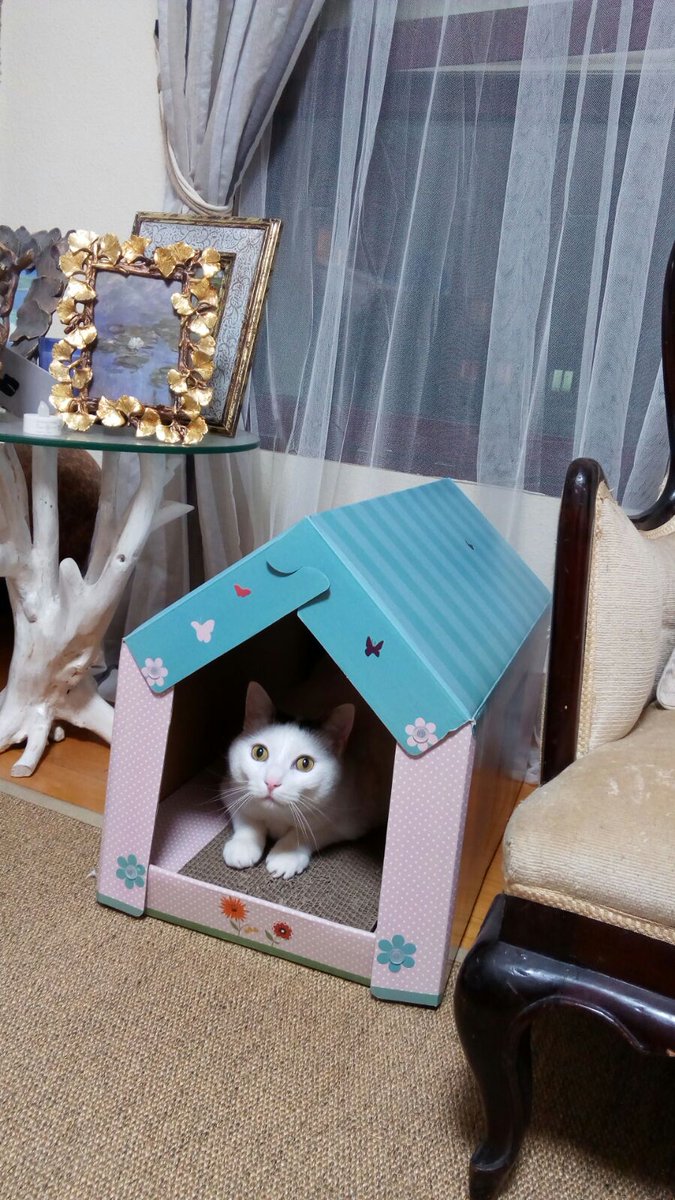 Musi in his new pastel house/scratcher ♡ ♡ ♡
