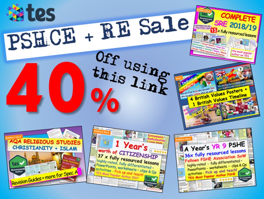 #PSHE#RE#Citizenship sale Tes have ever done for#TeacherApprecationDay - get 40% off all Tes resources on this link: https://bit.ly/2uksm0r#rse#rechat#teachers#ukedchat#edtech#SLTchat#ukedtech#edtech#smsc#pshe#teachingleaders@Tes_Teach@Tes_Australiapic.twitter.com/PAKQZl2sxC