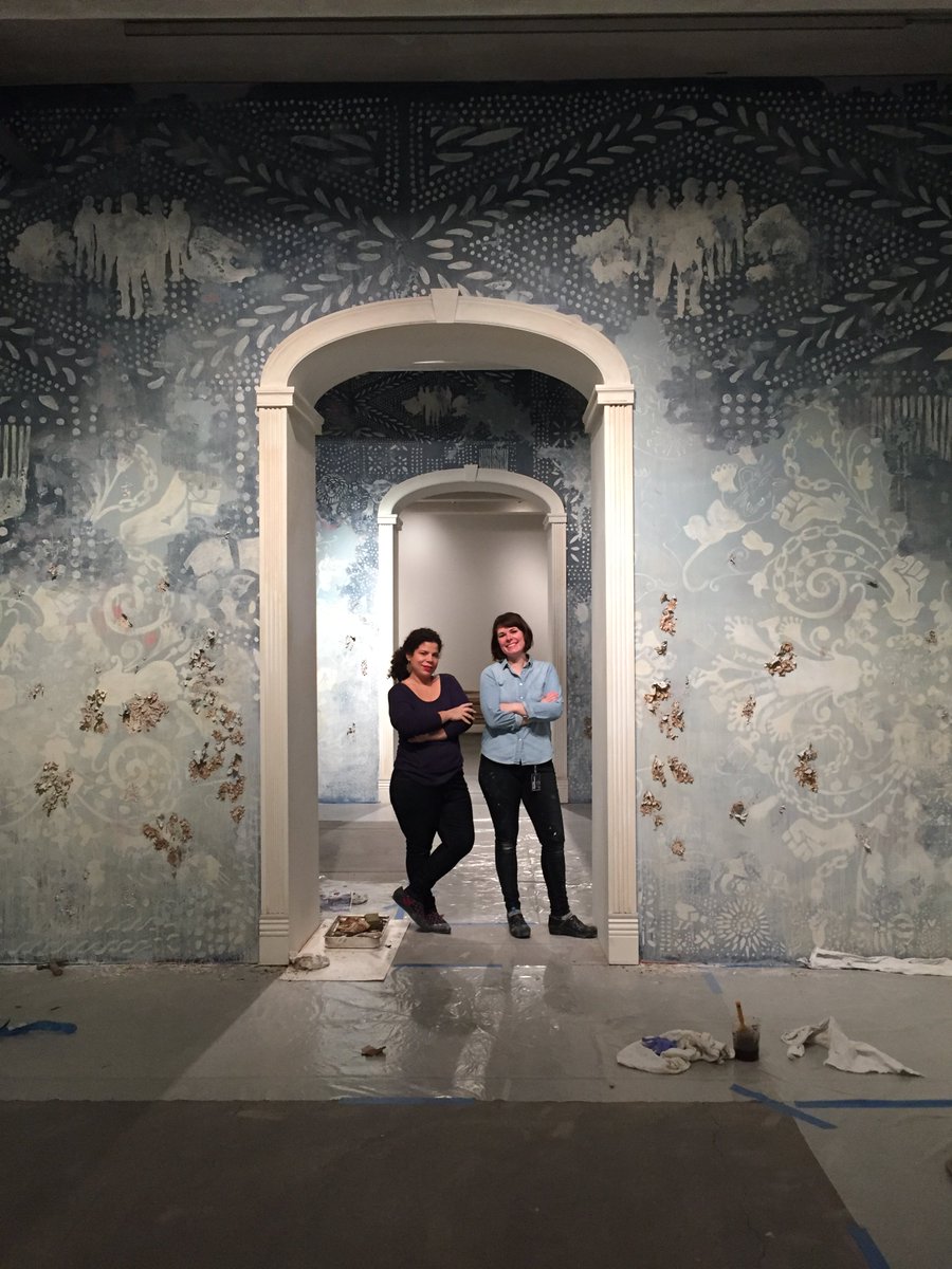 Firelei Báez & curator Jessica Beck stand w/ the mural installation for “Firelei Báez: Bloodlines” opening Friday.