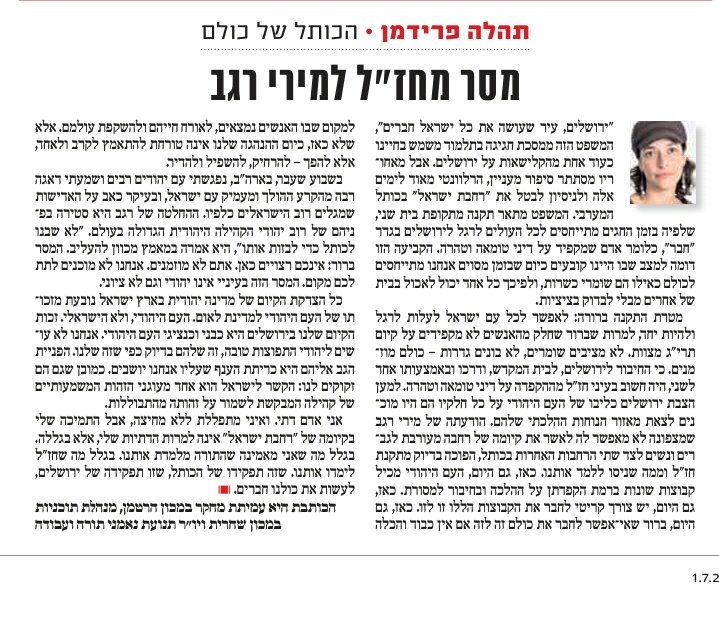 אנו מקווים מאוד שהחשדות נגד בכירים ברבנות הראשית בנוגע לשוחד לכאורה בתחום הייבוא בכשרות יימצאו בלא כלום. ועדיין, יש מקום לבדק בית משמעותי ודחוף, זאת בנוסף לכשלים החמורים שהתגלו בדו"ח המבקר. אנו קוראים לנשיא מועצת הרבנות הראשית לקיים בדחיפות דיון במועצת הרבנות בנושא.