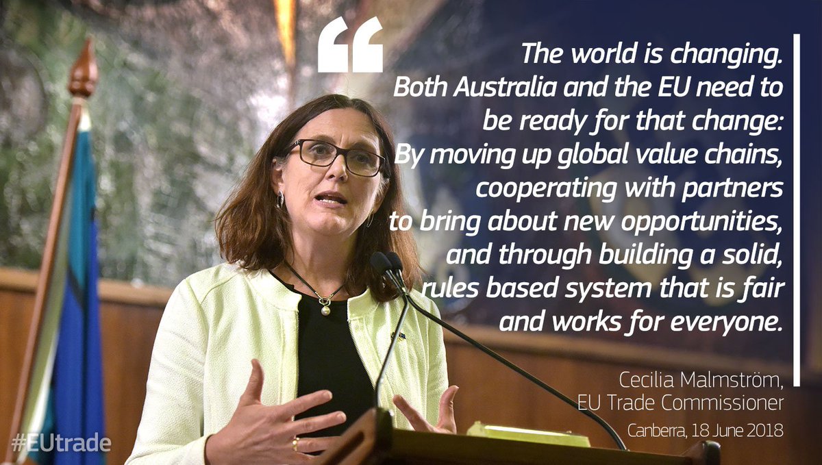 And we’re off! Launching negotiations for a trade agreement btwn EU & Australia with PM & Trade Minister . Hope to have a good deal concluded soon - would benefit small & large companies on both sides, creating jobs & growth.