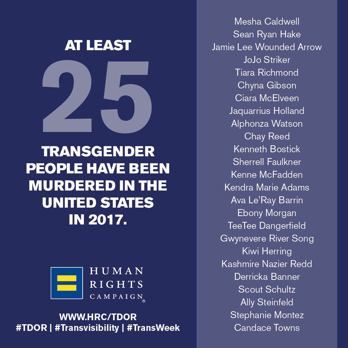@HRC mourns each#transgender person who was a victim of fatal violence in the United States.#TDORpic.twitter.com/L9bm0WdPvt