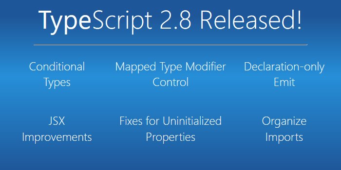 TypeScript 2.8 is here! Now featuring conditional types, mapped type improvements, organize imports, and much more!