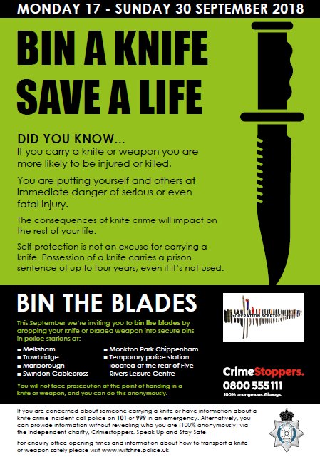Don't forget our knife amnesty as part of #OpSceptre is now live!! You can deposit knives anonymously at secure bins at our police stations including#Newport#Abergavenny#Cwmbran#Blackwood#Monmouth#Chepstow#Caerphilly more here: https://www.gwent.police.uk/en/newsroom/story/news/knife-amnesty-in-place-throughout-gwent-1/ …#LivesNotKniveshttps://twitter.com/gpabergavenny/status/1042028220474974208 …