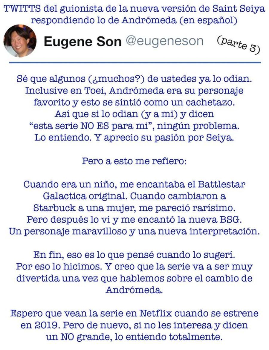 Eugene Son guionista de la serie Knights of the Zodiac Saint Seiya de Netflix dejo un hilo de Twitts respondiendo a muchas preguntas y comentarios de los Fans Parte 1 >> http://imgbox.com/YDS6rfOU Parte 2 >> http://imgbox.com/jnHUrpkN Parte 3 >> http://imgbox.com/w5lOWpQa pic.twitter.com/Jiw1Fld0vU