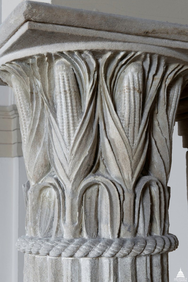 The corncob capitals in the Senate Vestibule are some of the oldest architectural features in the Capitol.