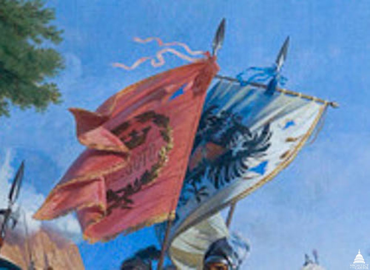 Hernando de Soto approaching the Mississippi as depicted in Powell's painting in the Rotunda.
