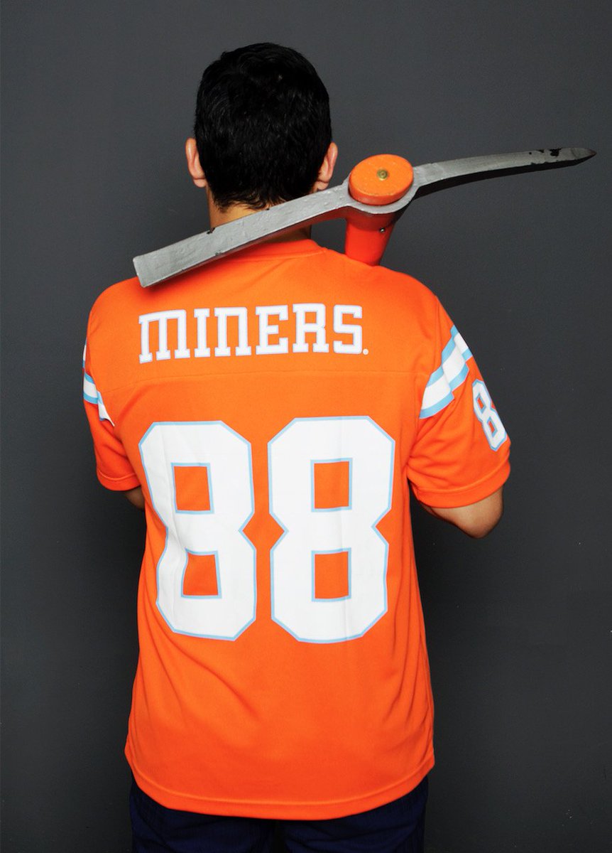 The first 1,000 Miner fans at the UTEP Homecoming football game on Saturday, Oct. 6, will receive this throwback jersey! Support your Miners as they take on North Texas at 5:30 p.m. in Sun Bowl Stadium.