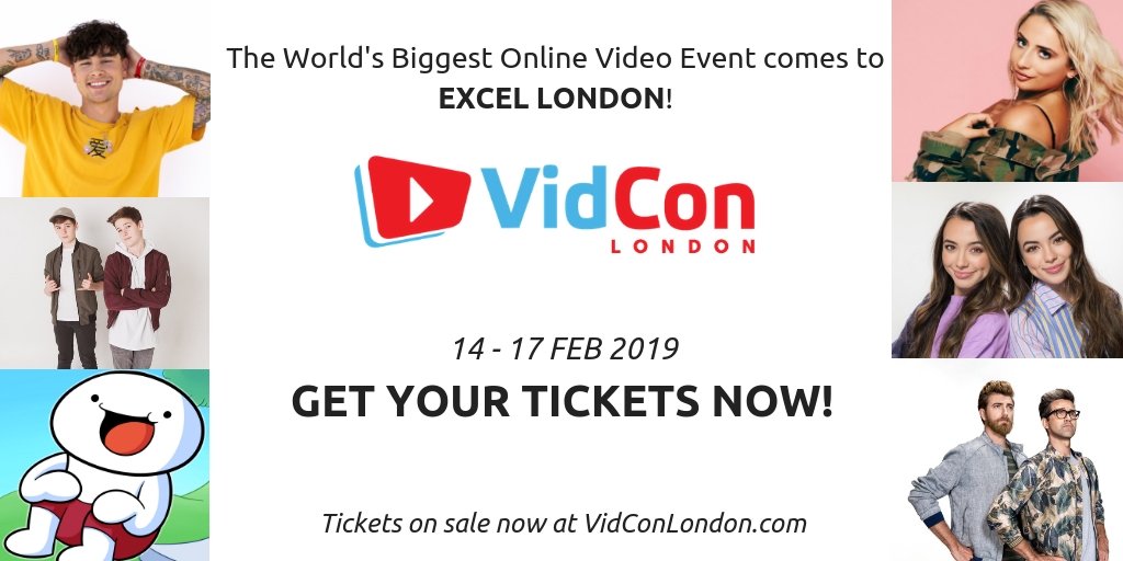 @VidCon is The World's Biggest Online Video Event and it's coming to London! See your favorite creators live at#VidConLDN 14 - 17 February. Get your tickets ASAP at http://ow.ly/9vgw30n0N0n !pic.twitter.com/uuU3vTLYPJ