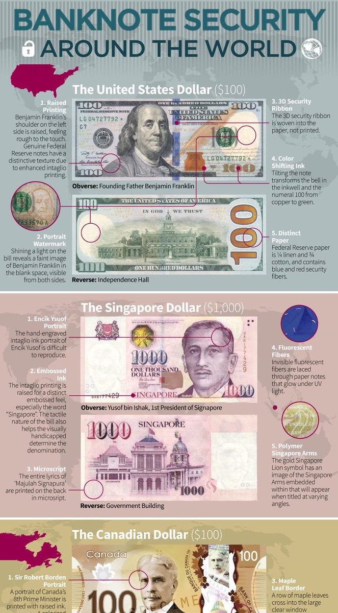 Infographic: 10 Banknotes From Around the World, and Their Security Features http://www.visualcapitalist.com/10-banknotes-around-world-security-features/ …pic.twitter.com/3TJSYC8vlX