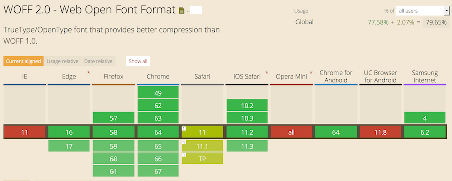 ... All modern Web browsers now support the WOFF 2.0 format for downloadable fonts https://caniuse.com/#feat=woff2 pic.twitter.com/dMK0FMM0wW