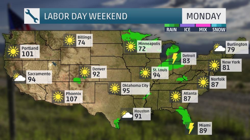 #LaborDayWeekend Forecast: Stormy Weather Possible in East, South While West Remains Hot, Dry: http://wxch.nl/2ewDct2 pic.twitter.com/2qlm2AD33u