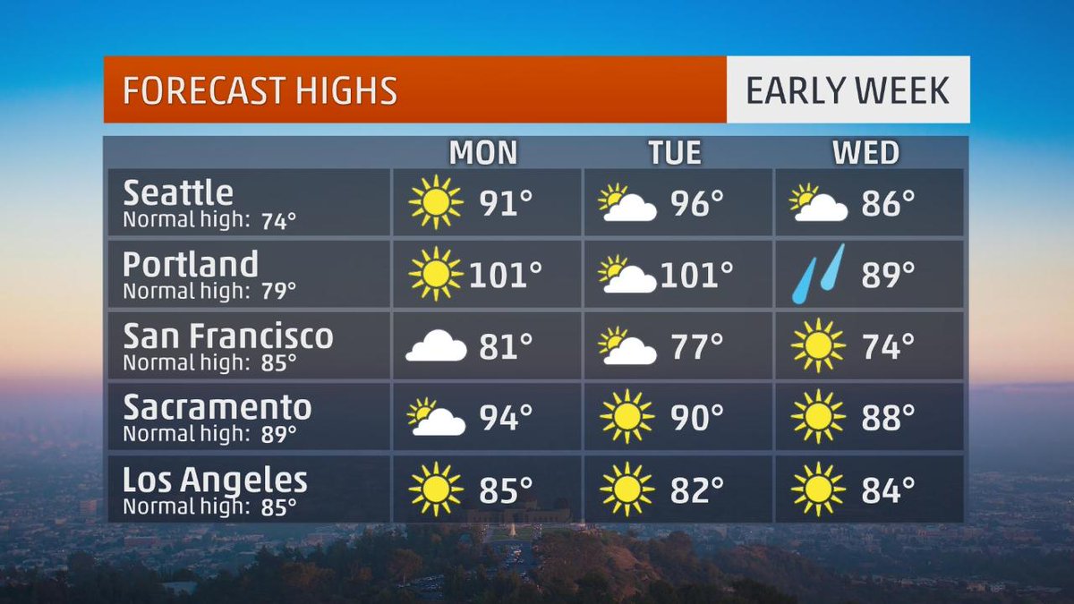 Record heat will shift to the Northwest this week where temperatures could reach 100 degrees in some areas: http://wxch.nl/2wwuQHT pic.twitter.com/k3ZoJltVeX