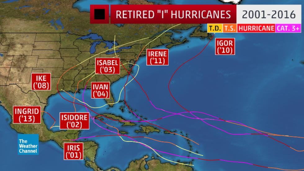Since 2001, eight Atlantic "I" storms have had their names retired: http://wxch.nl/2gBBt6y pic.twitter.com/beZCbFJcYL