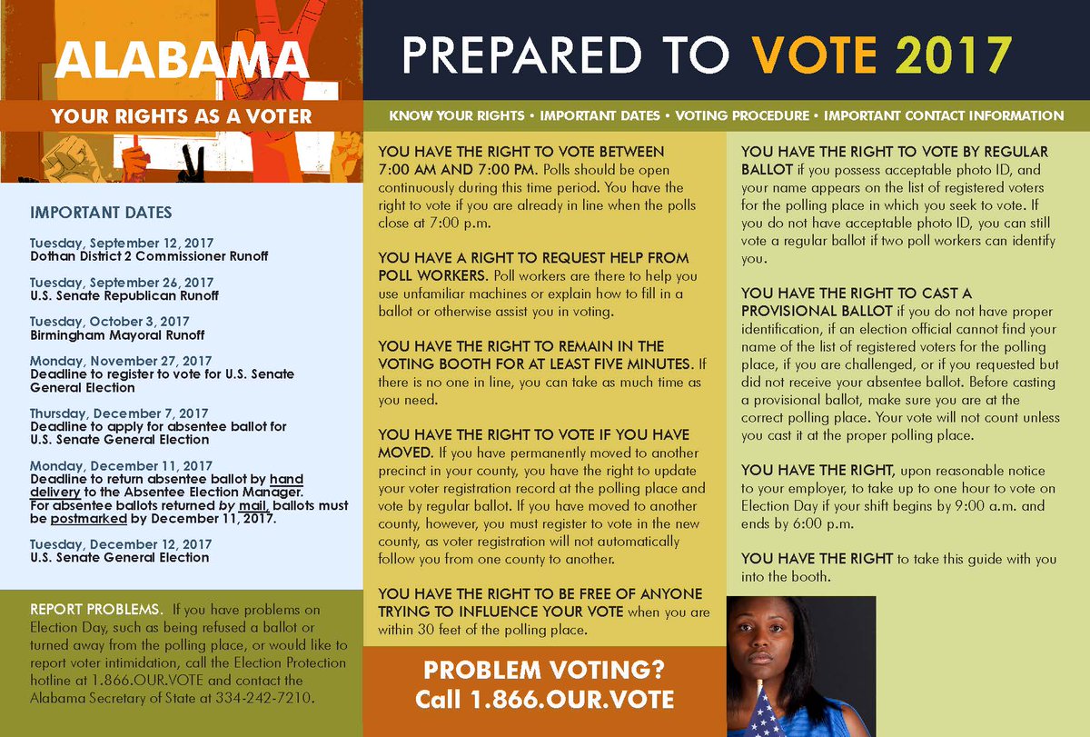 #Alabama for the special U.S. Senate election is a week from tomorrow! Make sure you#KnowYourRights. Refer to our postcard for important#voting information and spread the word:pic.twitter.com/duWAw9fb5O