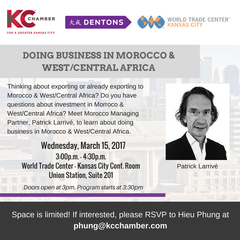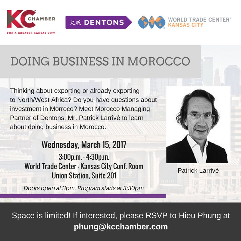 @Dentons Patrick Larrivé to learn about doing biz in#Morocco & West/Central Africa. RSVP to [email protected]pic.twitter.com/oqrr5fBQTc