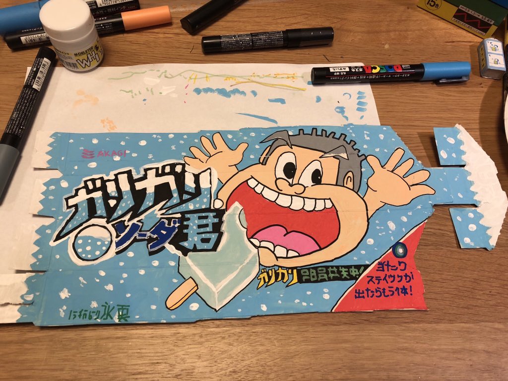 #ממתקיםיפנים והפעם ה-קרטיב של יפן, אינספור טעמים (עכשיו בקיץ יצא אבטיח) אבל אני ציירתי את זה המקורי Garigari-kun ガリガリ君 בעברית אותיות הקאנג׳י דומות ל: ׳נימנית׳
