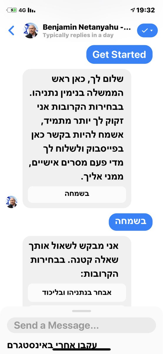מכונת התעמולה של ביבי עובדת. לפני שעה ״המכונה הממוחשבת״ יצרה פניה תמוהה של ביבי. כן בנימין נתניהו, אלי, בסמס. אפילו עניתי לכבודו, סליחה למכונה. ואני שואל מישהו קונה את הפייק הזה???? אל תפנה, אבל אל תזייף.pic.twitter.com/yOxXvQOARf