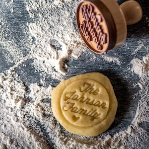 Thomas wrote on January 35 out of 5 starsVery impressed how well made this is. Looking forward to making plenty of biscuits with it.Wooden Cookie stamp / mold / Your Family / customize it with the writing of your choice / Carved from hardwood.